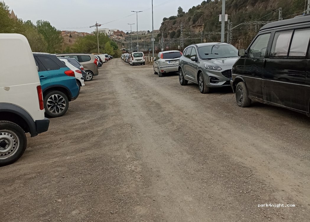Estacionamiento de tierra al costado de la carretera, muy lleno durante el día. Tenga cuidado con la entrada muy irregular.