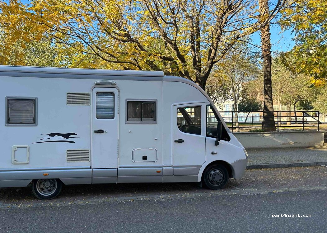 Parcheggio libero lato strada. Ottimo anche per camper di grosse dimensioni. A 15 minuti a piedi dal centro. Silenzioso durante la notte e tranquillo di giorno. Abbiamo potuto lasciare qui il camper per visitare la città. Di fronte a un ottimo bar. Nessuno ci ha disturbati e ci siamo sentiti sicuri.