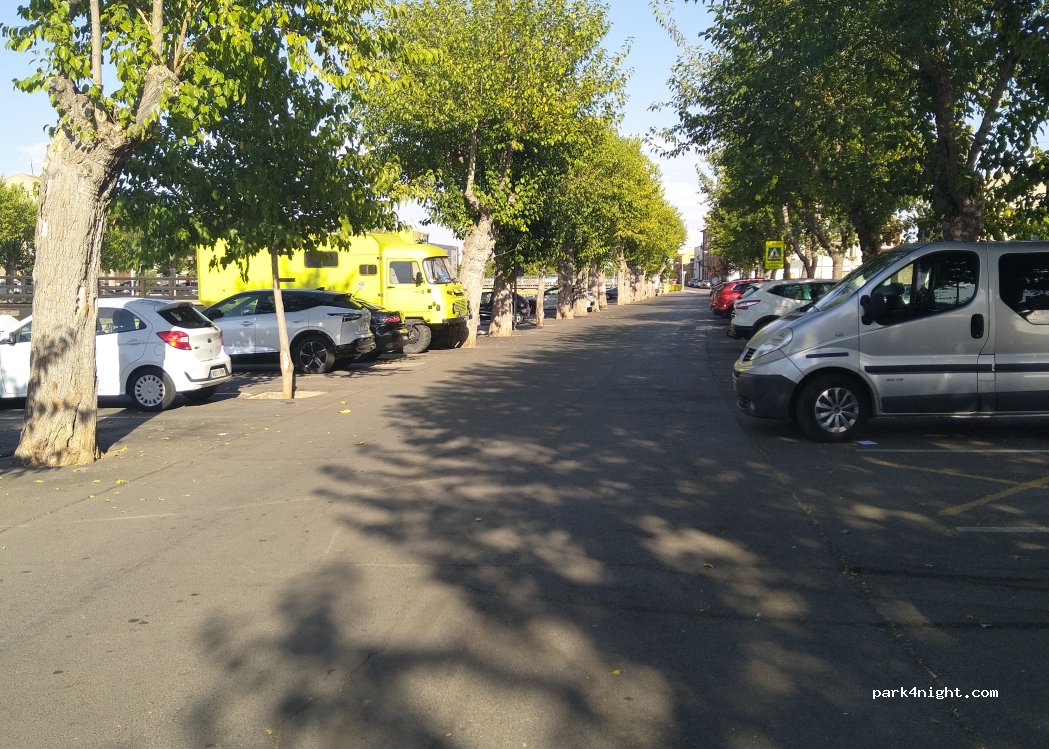 Es un aparcamiento en medio de la ciudad, nosotros aparcamos junto a un puente donde se cortaba la acera y así con la parte trasera de la AC (7'50m) pudimos invadir la acera sin obstaculizar el paso. Durante la noche es tranquilo y junto a la oficina de turismo hay una churrería, que viene muy bien para coger fuerzas.
