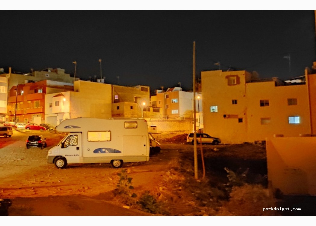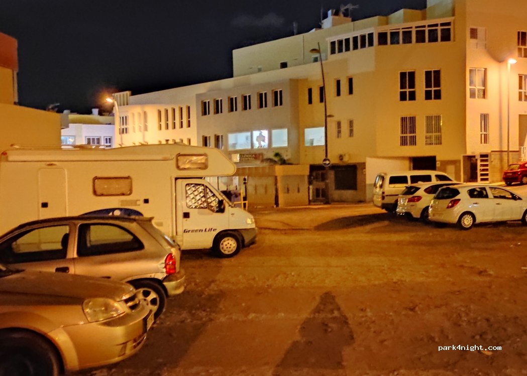 Parking en terre battue, quartier calme, derrière le centre civique Carrizal.
