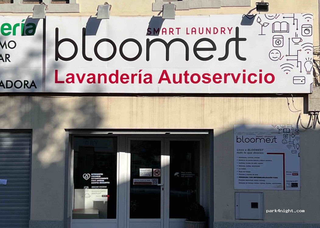 Lavandería Autoservicio BLOOMEST. Dispone de 3 lavadoras de distintas capacidades y 2 secadoras. Funcionan con monedas que se pueden cambiar en la máquina que existe al efecto. Abierta todos los días de 8,30 a 22,30 horas