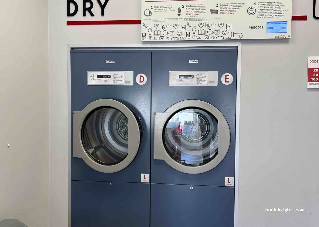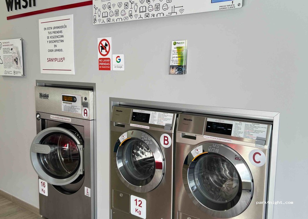 BLOOMEST Self-Service Laundry. It has 3 washing machines of different capacities and 2 dryers. They work with coins that can be changed in the machine that exists for this purpose. Open every day from 8:30 a.m. to 10:30 p.m.