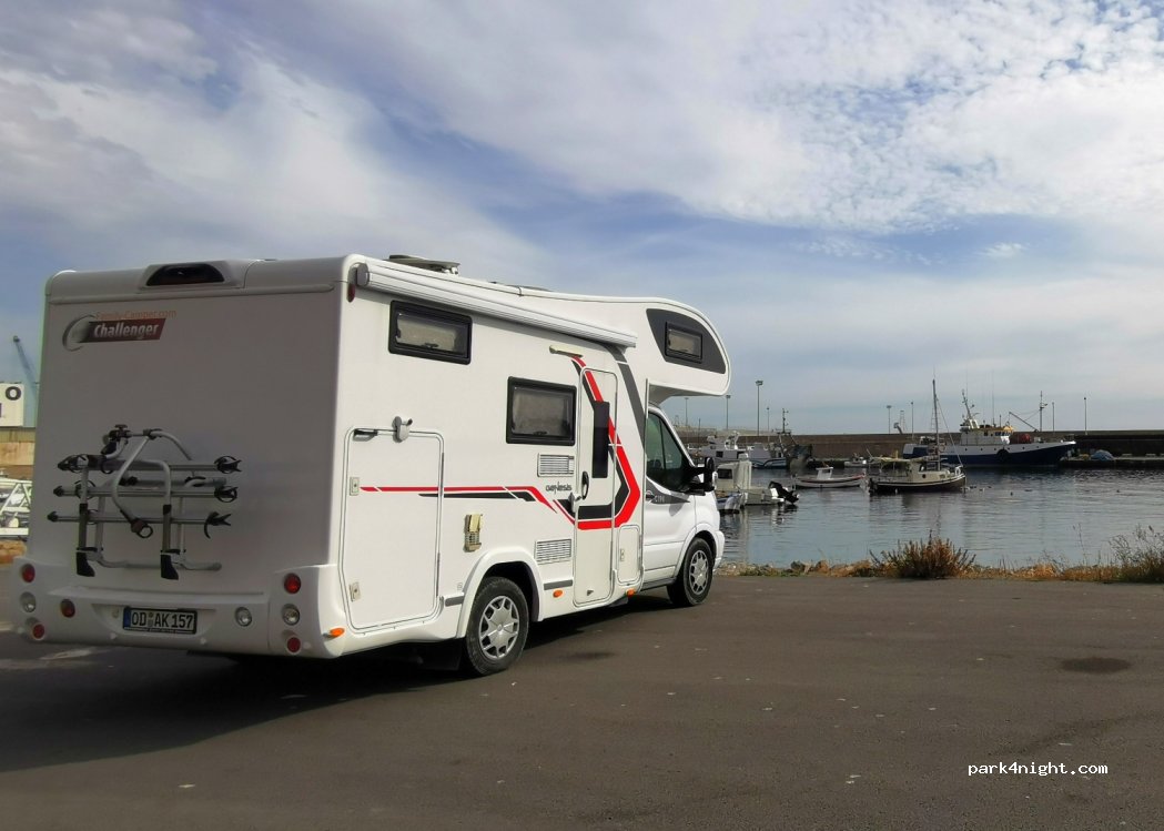 Abseits vom Stadtverkehr gibt es direkt am Hafen einen RIESEN, asphaltierten, ebenen Platz – ohne jegliche Beschilderung. Nur zum autarken Stehen geeignet.