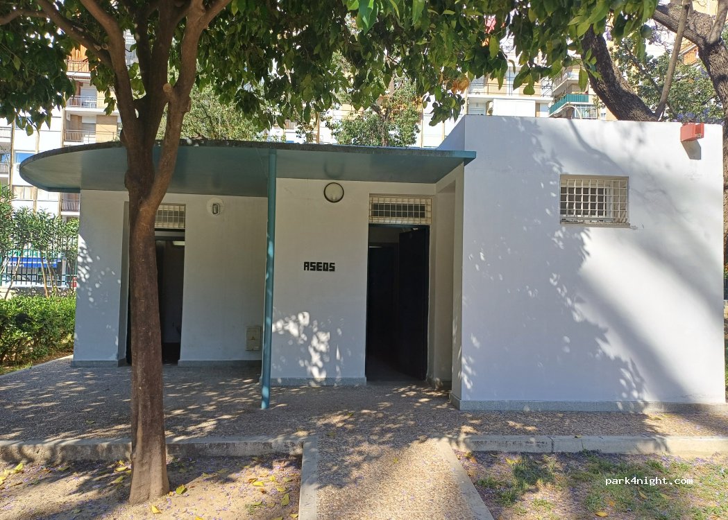 parking ombragé très calme. Il très bien situé pour visiter Séville : station de location de vélos près du parking ou métro. Magnifique petit parc où il y a une fontaine d'eau potable et des WC très propres ouverts la journée. Nous y avons pris notre petit déjeuner. De l'autre côté de la route, immense parking bitumé où nous avons stationné le van le temps d'une douche. Aucun vis à vis.