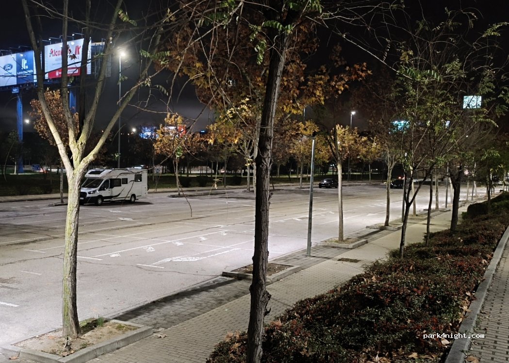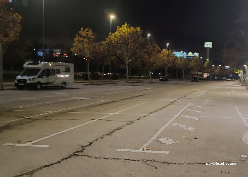 grande parking avec beaucoup de place. un peu sur pont, calme. à côté aldi et grande centre commercial. pour visiter madride: arrêt bus pas loin. 2€ par passager et vous êtes à plaza castilla et d'la bus vers centre de madride. 6€10 - 10 voyage. avec ZFE de madride si vous avez vieux CC ça peut être bon solution.