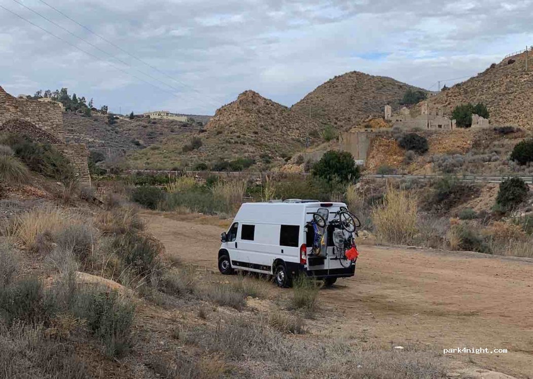 Parking at the start of the Ruta de la mineria de Bedar. There is no ban on spending the night here. The road could be a bit annoying. Hiking trail is very beautiful with a view of Bedar.
