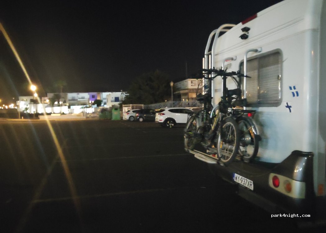 Public parking behind Rubicon Shopping Center (opens 8am, closes 10pm, clean restrooms, good bakery) Three large camper sites. (7 meters), almost in the center of the best Marina of Lanzarote (chic restaurants, shops, etc.).