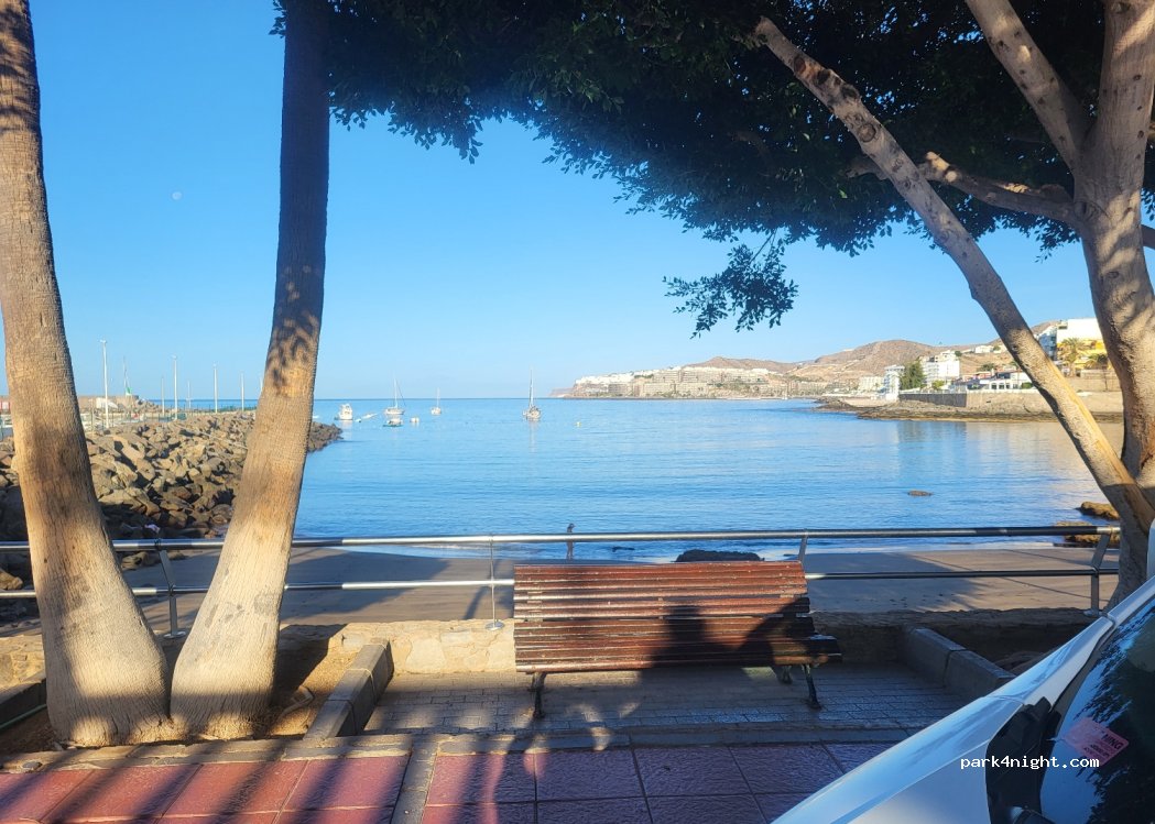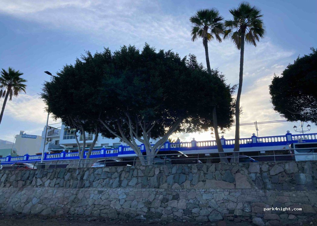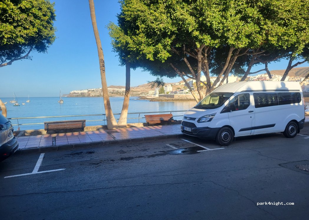 Aparcamiento gratuito día y noche para vehículos de hasta 5 m de longitud, en el paseo marítimo.