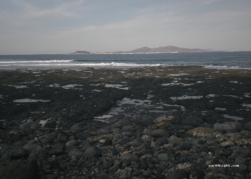 Dirt area on the side of the road that runs along the north side of the island. Easy access with campers and vans. Area large enough to accommodate a dozen campers. Silent place, at night lulled by the sound of the waves. Place frequented by surfers during the day.