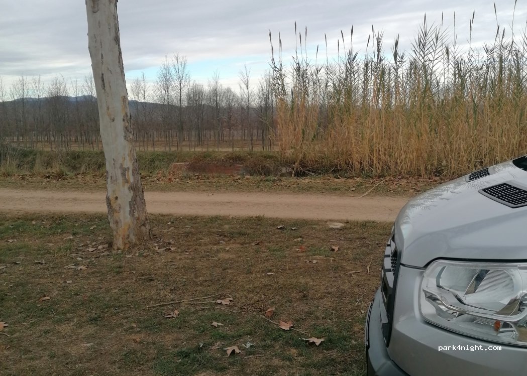 Gran aparcamiento de césped cerca de una zona industrial a un lado y campos al otro. Nadie nos molestó, sólo pasaban muchos camiones y vehículos agrícolas. Puedes dar una agradable caminata o andar en bicicleta hasta un río que está a 15min.