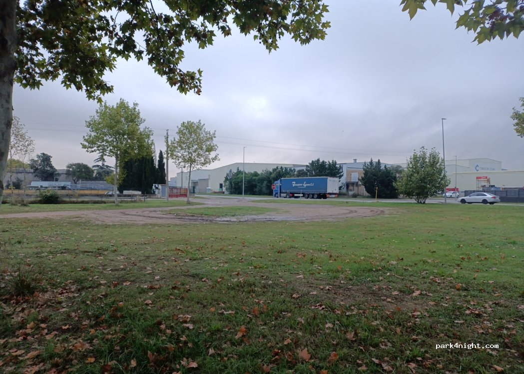 Grand parking herbeux à proximité d'une zone industrielle d'un côté et de champs de l'autre côté. Personne ne nous a dérangés, juste beaucoup de camions et de véhicules agricoles qui passaient. Vous pouvez faire une belle promenade à pied ou à vélo jusqu'à une rivière qui se trouve à 15 minutes.