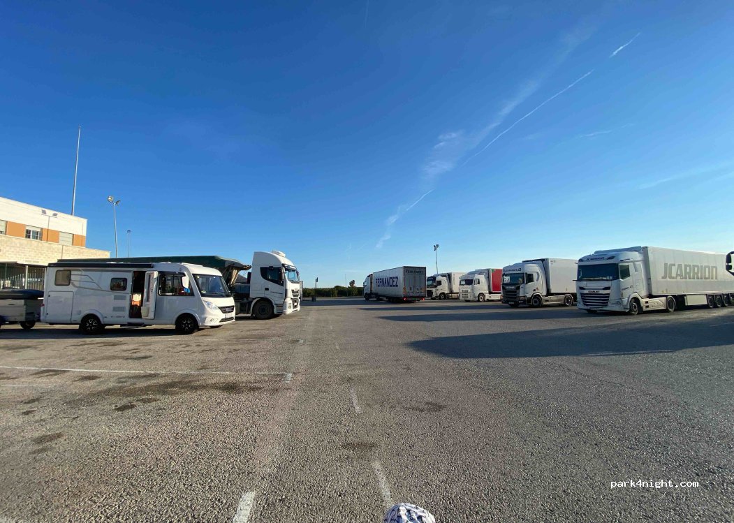 Gas station restaurant parking for lorries. 0.60€ per hour or 0 if you just go and get 1.50€ coffee in the morning. Lorry parking is located behind the restaurant. I don't recommend to sleep there. They have some kind of electricity generator that makes so much noise over night. I couldn't get a good sleep. Park in front of the gas station as far away from the paid parking.