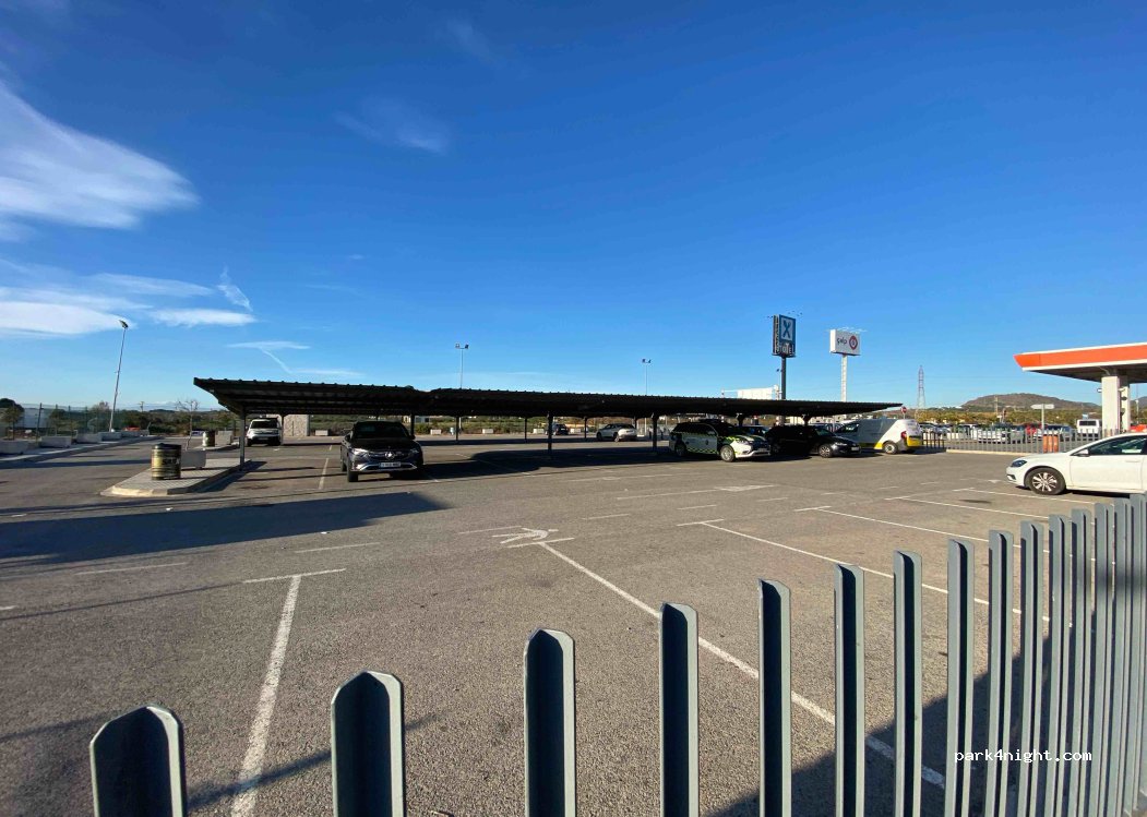Dormimos aquí una noche, veníamos buscando una ducha, y que grata sorpresa pagas 5€ por ducha, en nuestro caso 2, y te dan un vale para que consumas el mismo importe en la cafetería, además entramos al parking vigilado ya que con los 10€ de consumo nos salió gratis, total 2 desayunos a tope, 2 duchas y parking privado 10€, no está nada mal, eso si la estación es bastante ruidosa.