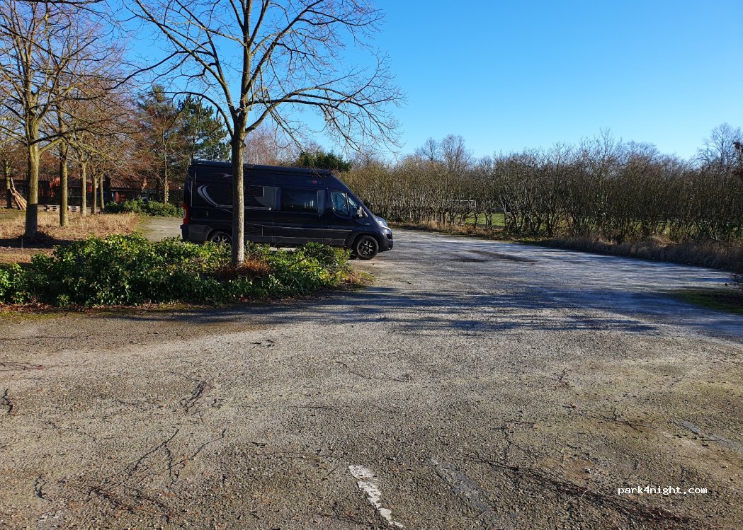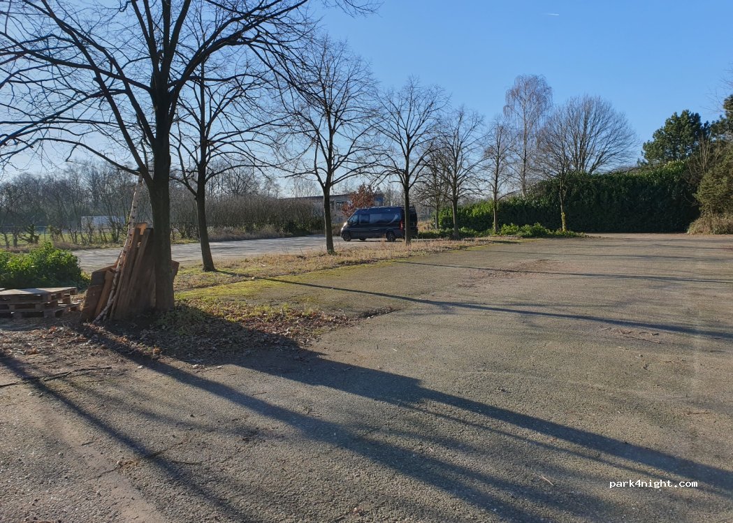 Gepflasterter Parkplatz am Olen-Fußballplatz, viele große Spielfelder und im Sommer Schatten unter Bäumen. Neben einer Nachbarschaft und einer sehr ruhigen Übernachtung.