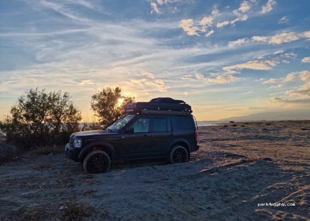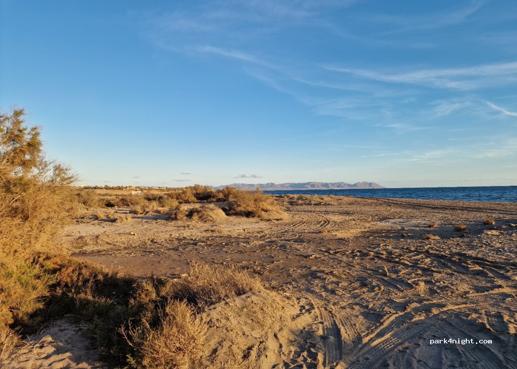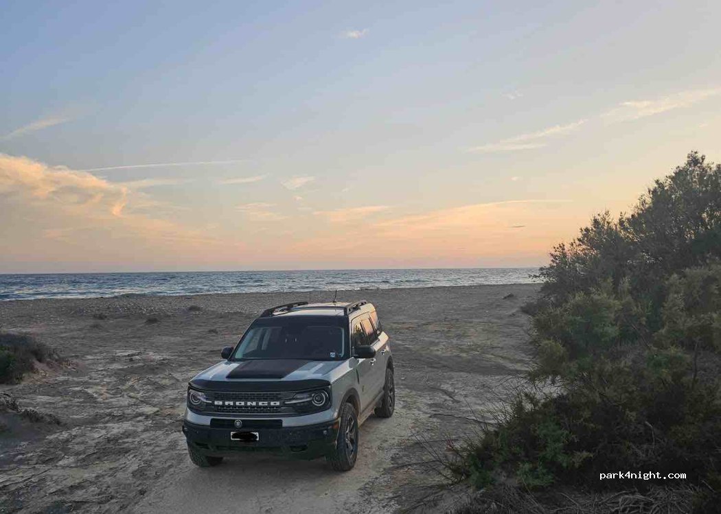 Perfect pitch for 1-2 nights and during the day, ideal for smaller campers or 4x4s. Right on the beach, very quiet, undisturbed. Each bay can fit 2-4 campers (T4/T5/Defender and even Sprinter size works perfectly. You drive here on a nice sandy gravel road, relatively flat.