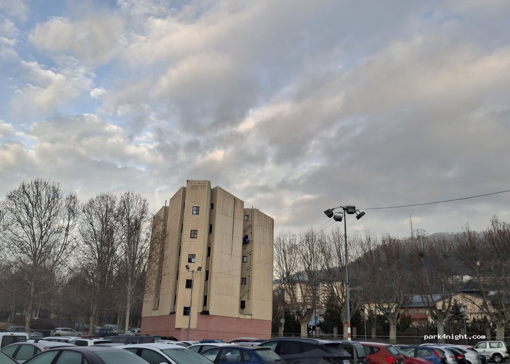 És un parquing gratuït. Espaiós i silenciós a la nit. Hem dormit aquí improvisant perquè teniem problemes amb la furgo i necessitàvem veure un mecànic al matí. Hem dormit molt bé. Està a 2 minuts de la catedral i molt a prop del centre caminant i també molt a prop de la piscina municipal.
