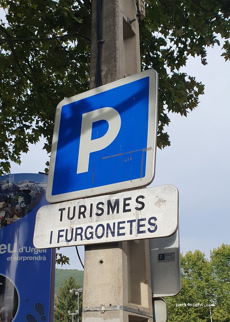 A una de les dues entrades del Parquing diu "NOMÉS TURISMES I FURGONETES" Hem preferit dormir a un carrer a prop.