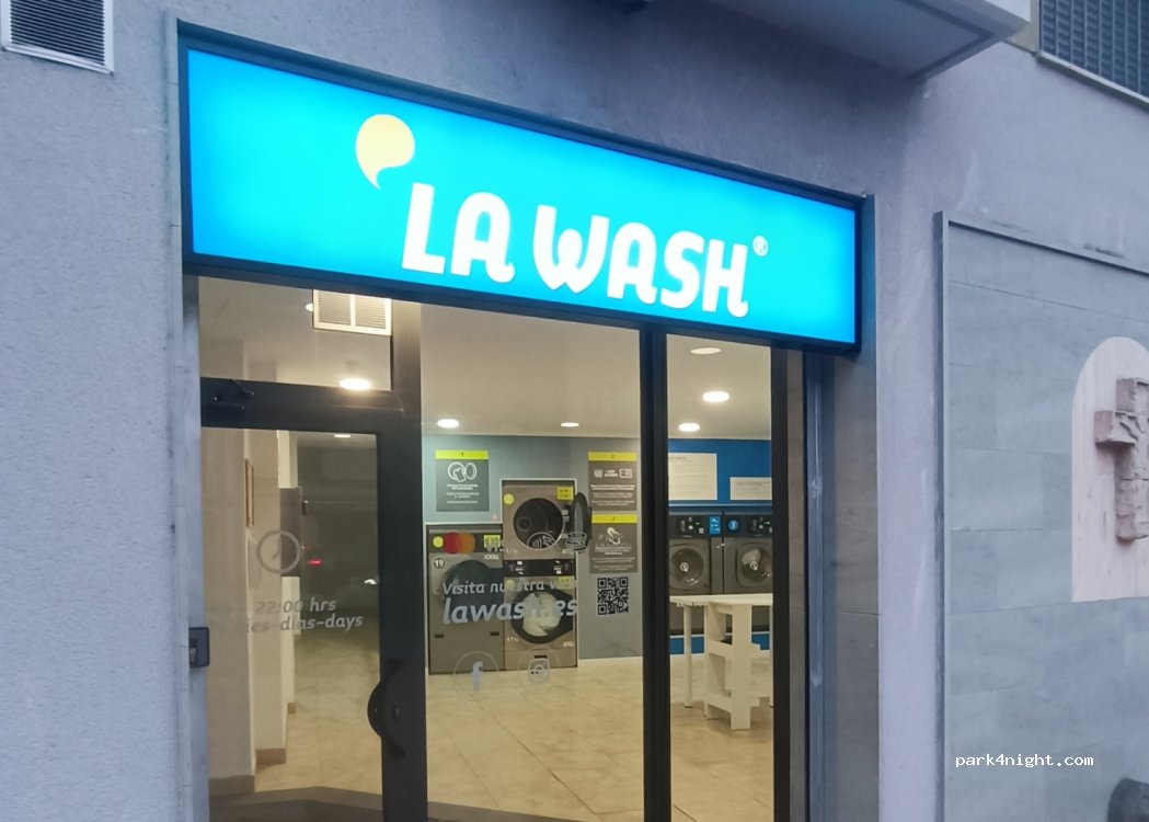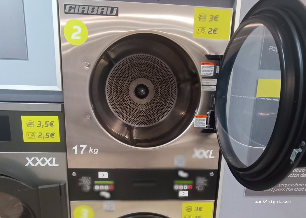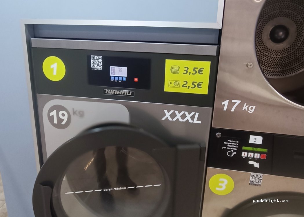 There is a laundromat at the roundabout here. You can park nearby for free. The costs can be seen in the pictures. is a self service