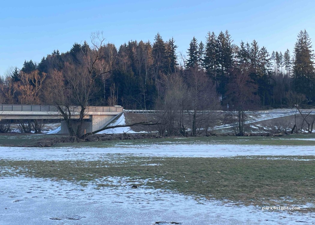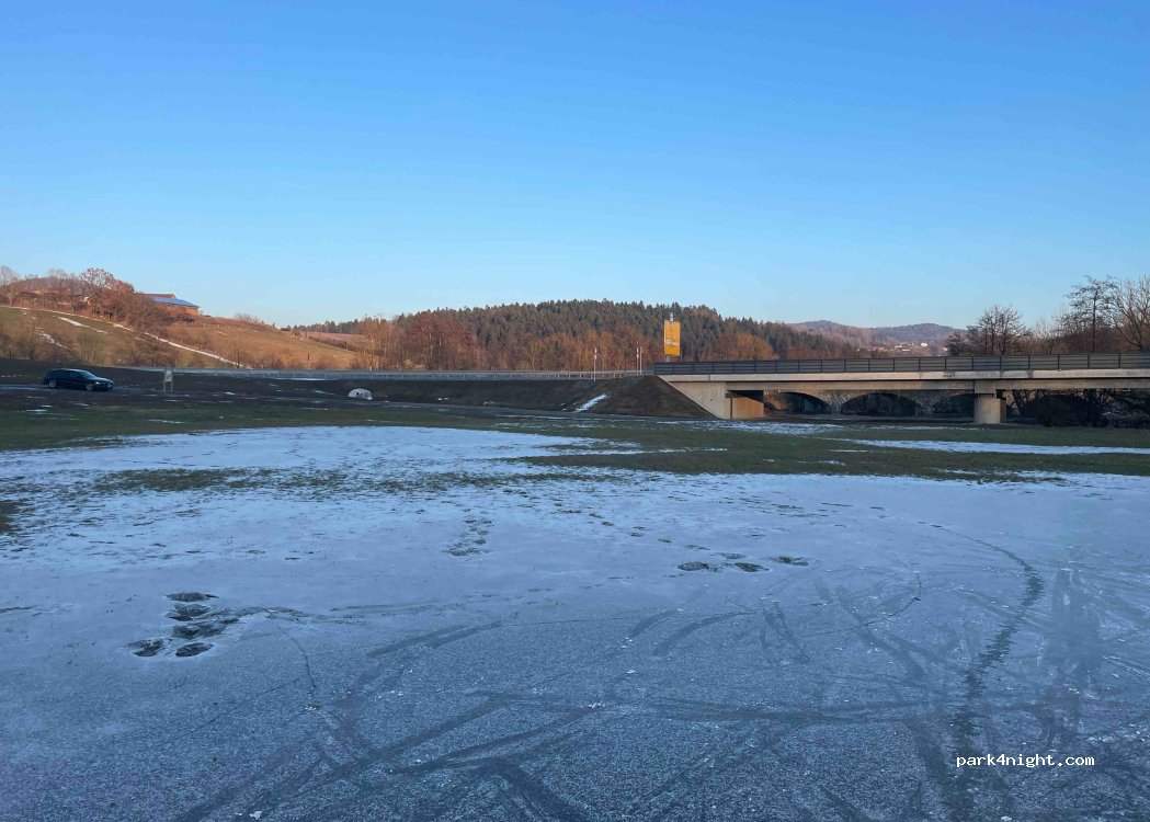Direkt unter der Brücke B 85. keine Park schilder, aber auch keine Verbotszeichen. Auf der einen Seite höher als wie auf der anderen Seite.