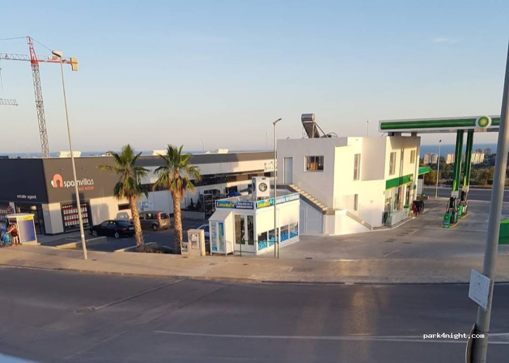 Amplio aparcamiento en la carretera para autocaravanas y autocaravanas.