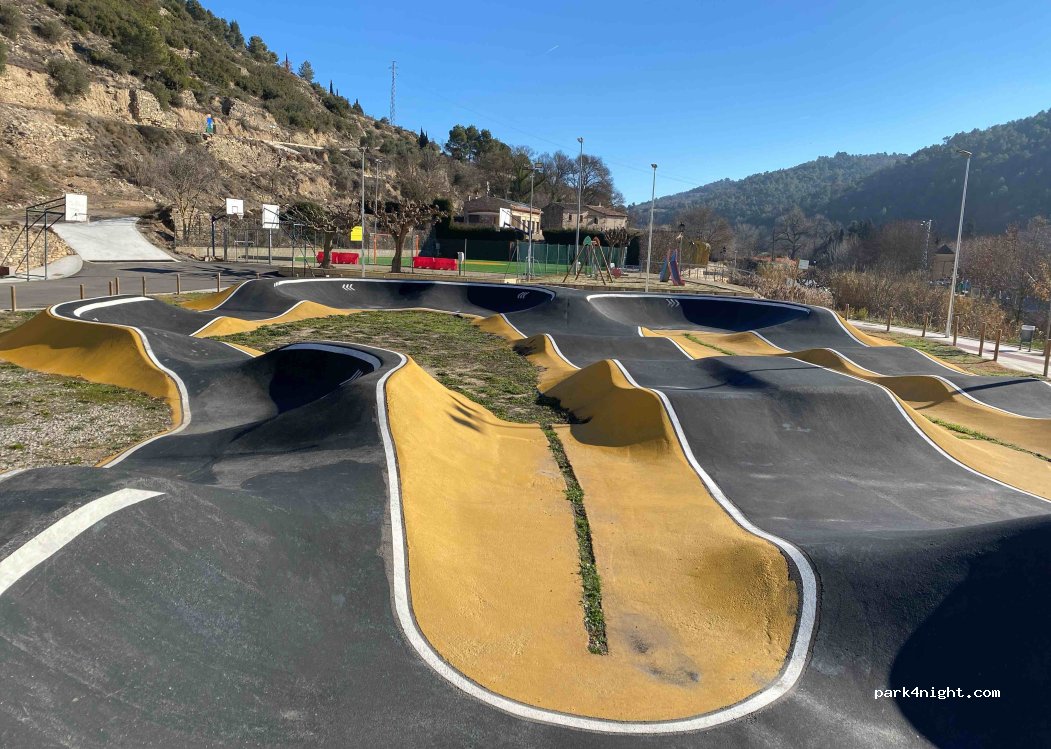 Aparcament sense serveis però molt pla i per qui li agrada la bicicleta i caminar segur que trobarà forces opcions. Hi ha un magnífic pumptrack just davant. Desconeixem si hi ha alguna botigueta per comprar menjar o records de la zona i també quina es la oferta gastronòmica del lloc. Haurem de tornar. No hi ha cap ombra, així que gens recomanable si fa calor, en canvi a la tardor o l’hivern si.