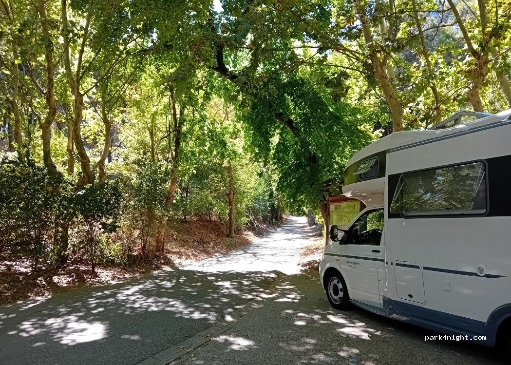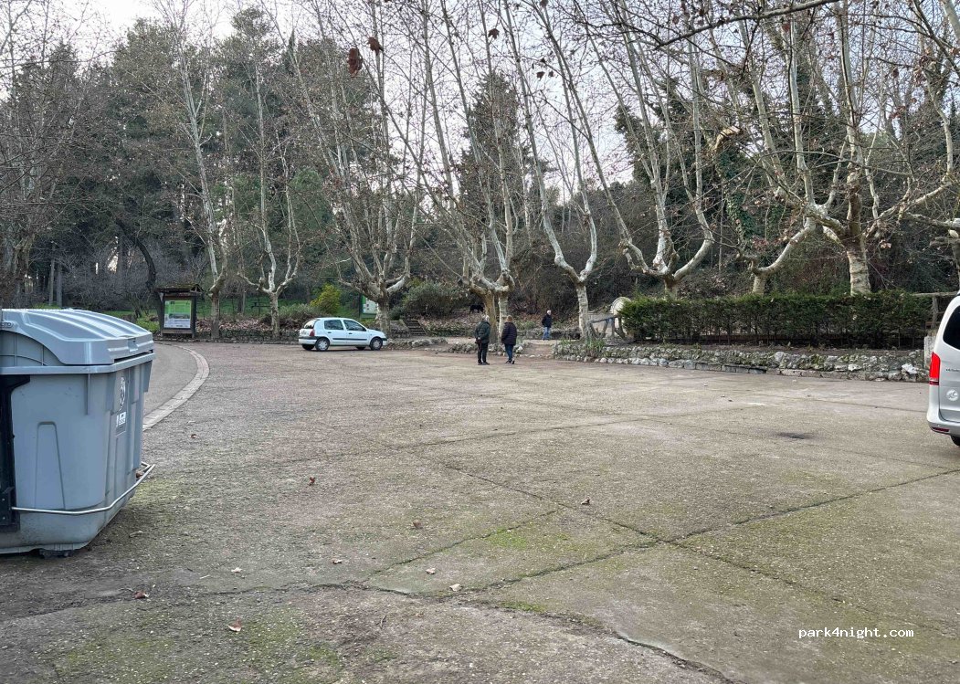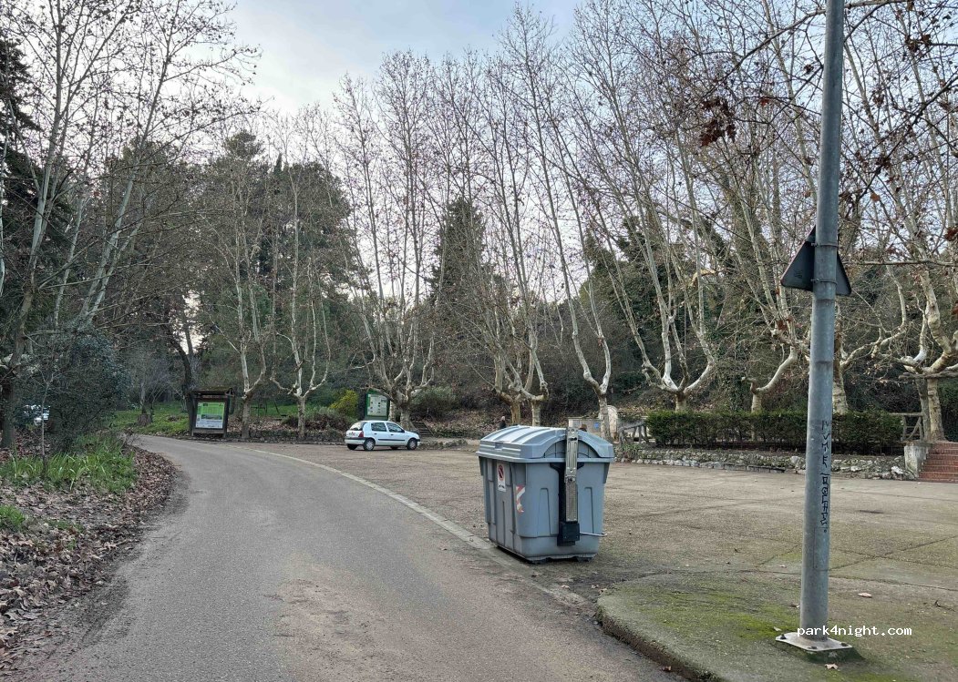 Discreet parking for about 6 or 7 vans. Adjacent to a forest area with picnic areas and a fountain. Lots of trees. The coolest place in all of Valladolid to rest on hot summer days. It has a bit of a slope; For small vans it is ideal.