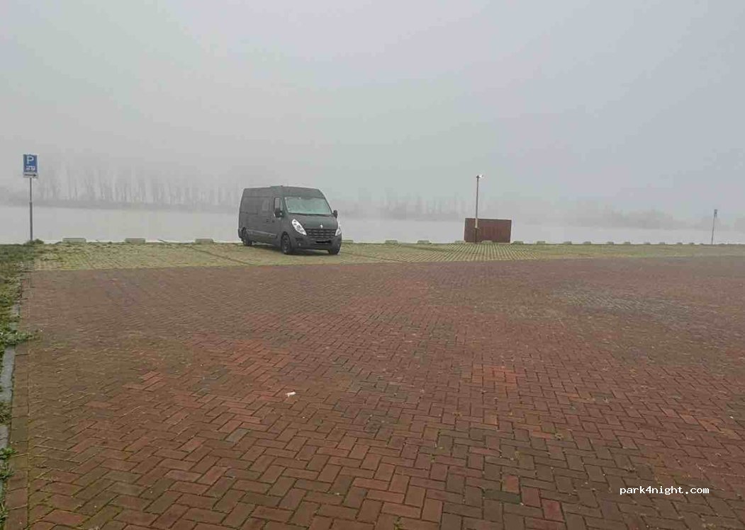 Lovely spot! The parking spots fill up fast when the weather is nice. But it’s a level parking place, lovely view on the rhine river. The boats passing are audible but not loud. Perfect for a night