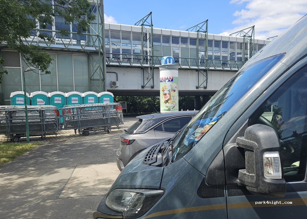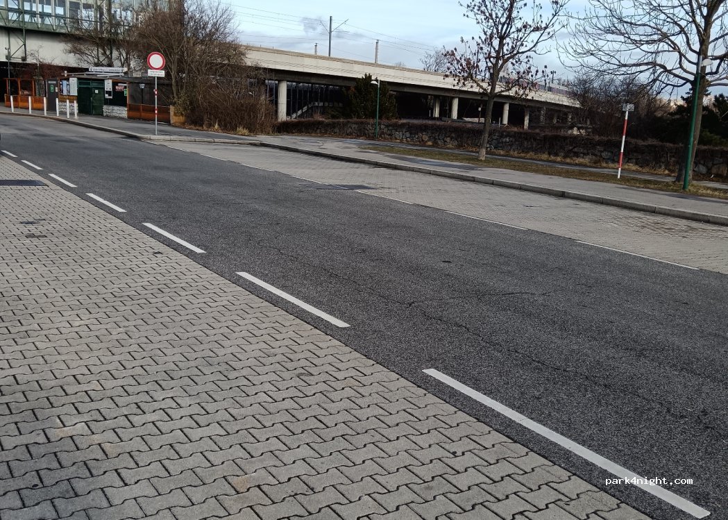 Fairly level parking, no prohibition signs. next to the cycle path and next to the metro for Vienna center. max space 6 meters.