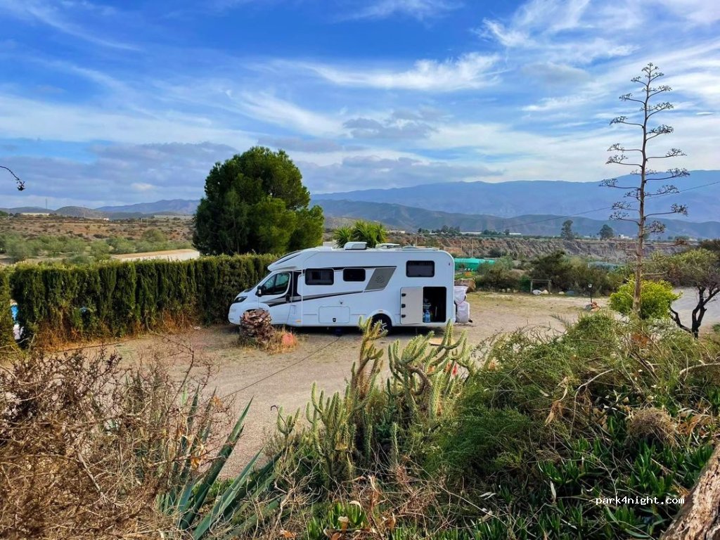 We offer up to 4 mobile home parking spaces on our finca. Shower and toilet are available. WiFi, pool use (in summer), electricity access and barbecue area are available. Dogs are very welcome.