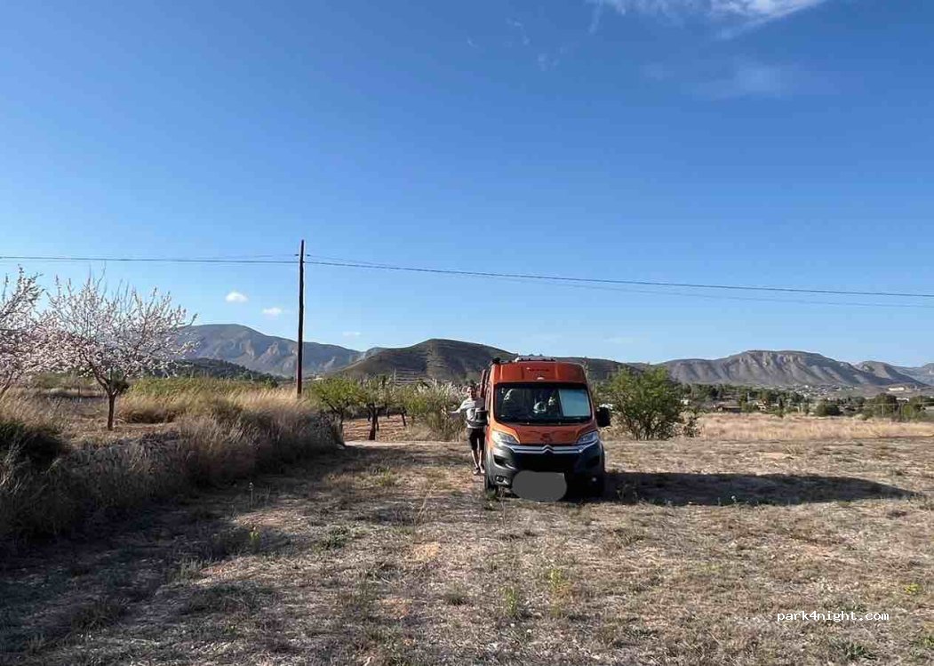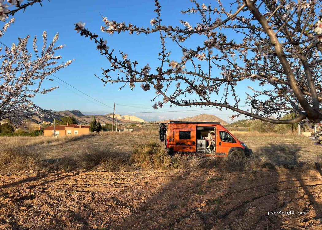 Es war schwierig den Platz zu finden,erst mit dem Vergleich der Fotos , Man steht auf dem Feld, die Auffahrt ist schwierig ,für kleinere Vans eher machbar. Aber Wir hatten wirklich einen schönen Blick in die blühenden Mandelbäume und die Berge, mit herrlichen Sonnenuntergang es ist sehr ruhig. Sehr freundliche Besitzer haben uns abends begrüßt, sie waren sehr erfreut,da wir die ersten waren.