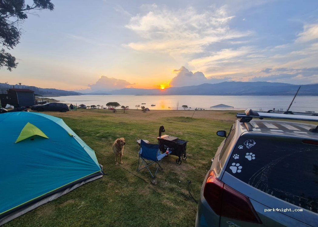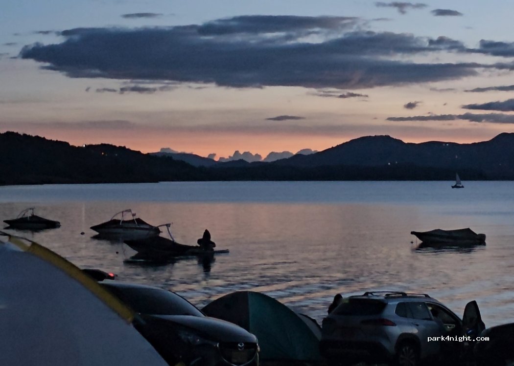 Excelente lugar para acampar con todos los servicios públicos, dentro de la zona hay un gran restaurante que funciona los fines de semana (viernes a domingo y festivos)...si quieres tranquilidad y silencio acampar entre semana hasta el viernes...ya que los sábados llegan grupos de gente a tomar y hacer reuniones hasta la madrugada. Pero despertar frente al embalse es mágico y poder hacer actividad acuáticas. PET friendly.