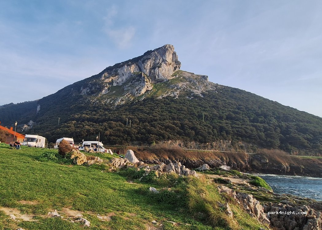 Great place to stop. Veiws are quite spectacular mountains and sea. Very busy in daytime sat/sun.but by evening time they had gone home from the beach. 3 place to eat within 200 m. Beach was lovely soft sand & the sea crystal clear. Clean up your mess as we don't want to lose the great place to park up.