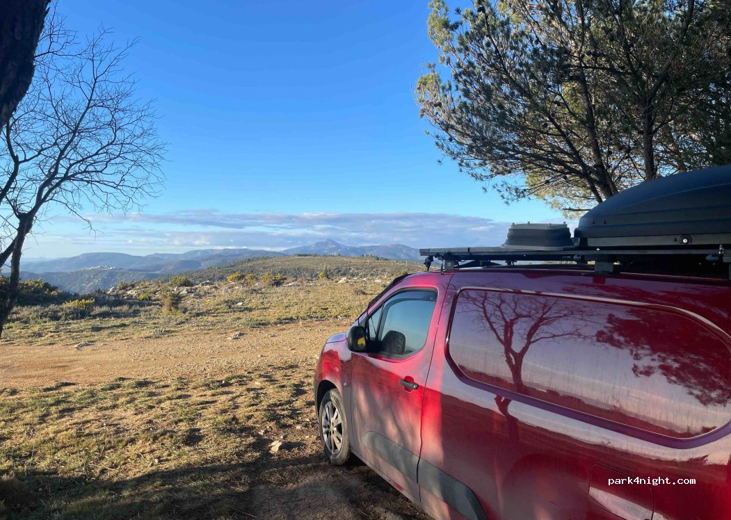 Très beau point de vue, endroit calme. Ne pas tenir compte du GPS en arrivant de l'est continuer jusqu'au village première à gauche puis descendre jusqu'à un chemin qui paraît étroit mais ça passe avec un integral de 2.70 m, arrivé en haut superbe !