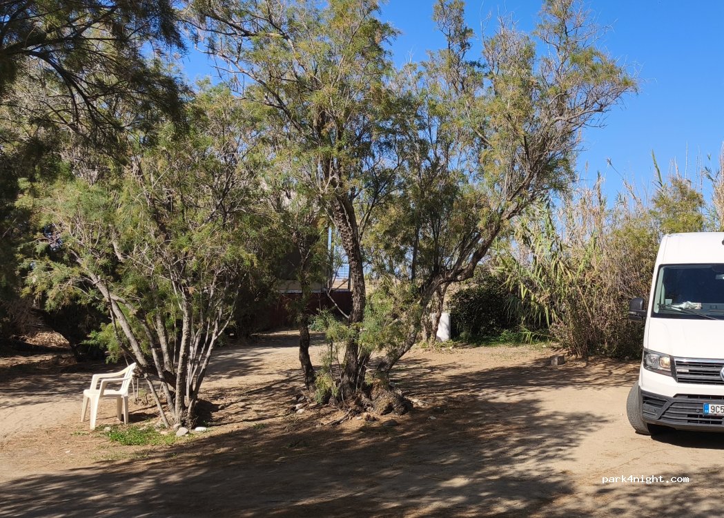 Very peaceful, laid back camping. Essential but clean, satisfies all basic van needs. Many spots in the shade, very close to a huge free beach, lovely receptionist sells homemade essential oils, cheap car/scooter rent to explore the area. The taverna looks beautiful but unfortunately it was closed during our visit. 27€ per night for 2 people, 1 camper and electricity. Just be careful when you drive down the small road that leads to the camping if you have a +300 cm van. Would go back!