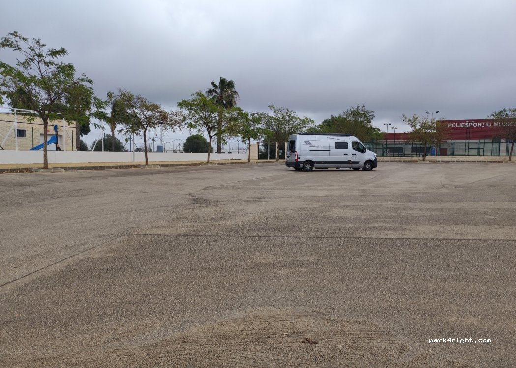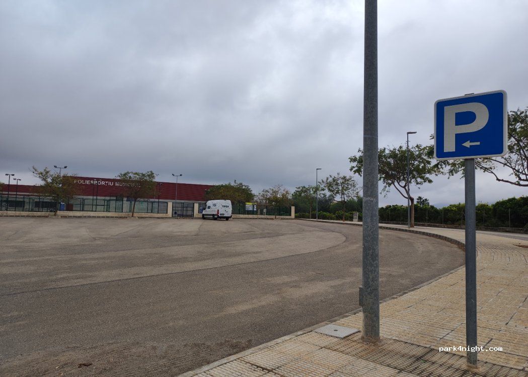 Es el parking público (gratuito) del polideportivo municipal. Preguntamos a la policía municipal y nos dijo que no había problema para pernoctar.
