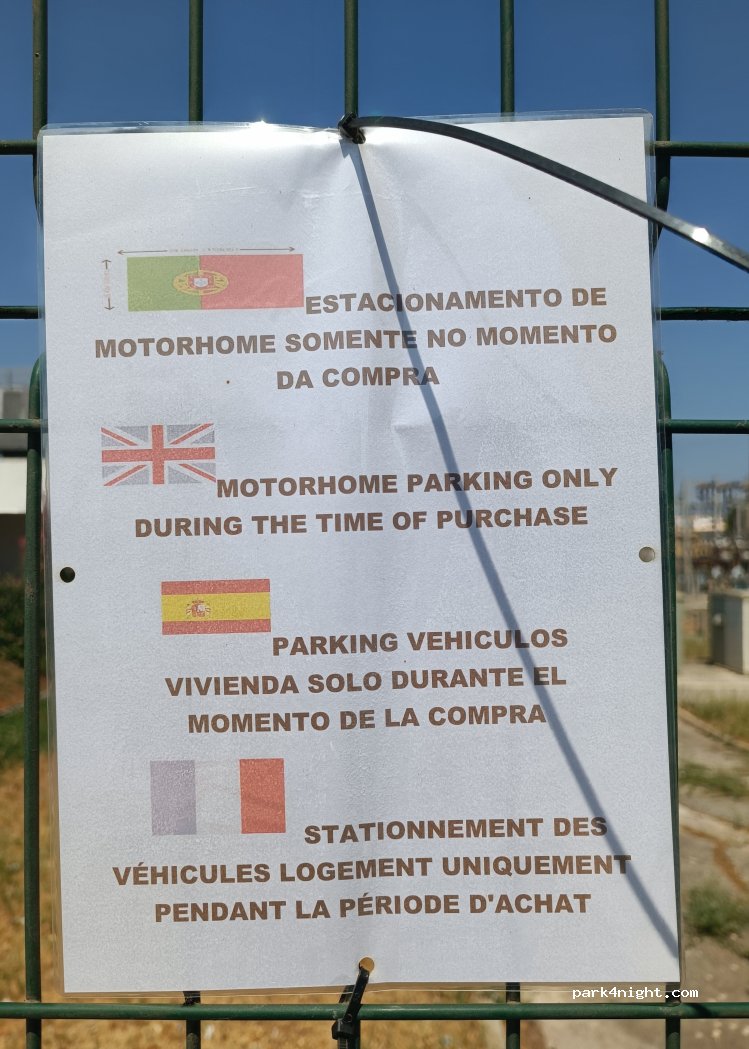 Según el cartel que hay justo detrás de las plazas de aparcamiento para vehículos vivienda, solo se puede usar durante la compra. No se puede pernoctar.