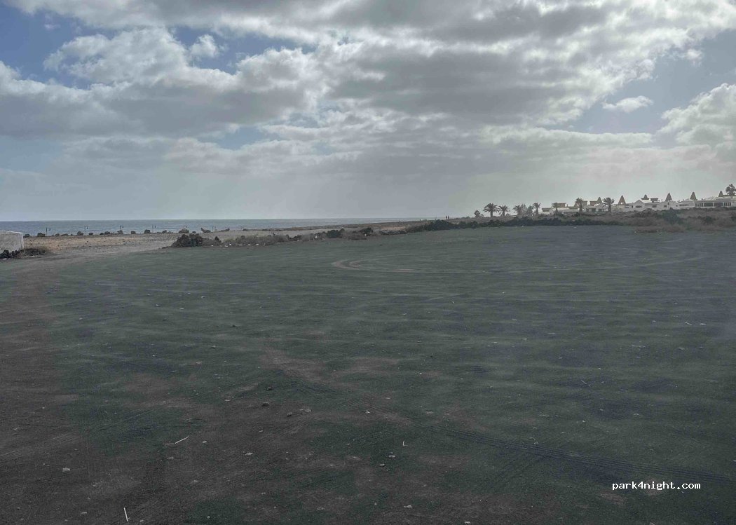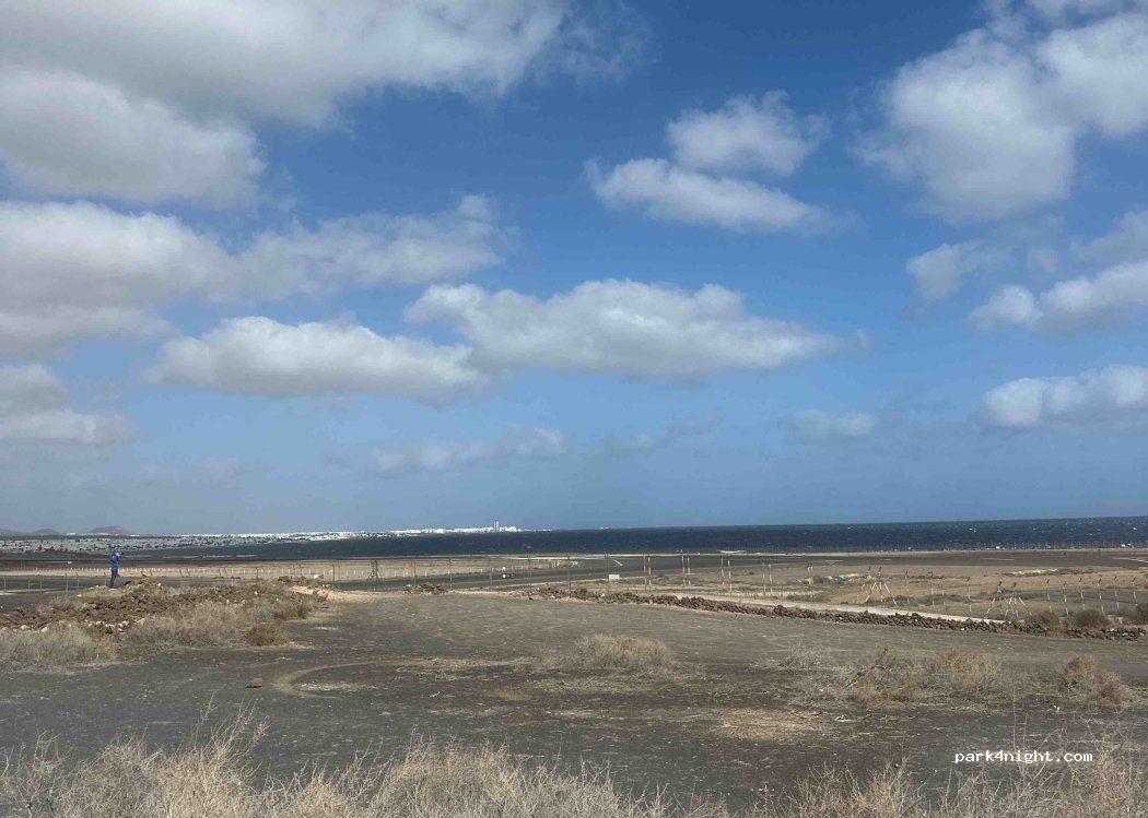 Parcheggio di fianco all’aeroporto, si sentono gli aerei partire ma dopo un po’ ci si abitua. Vento forte, ma niente di strano a Lanzarote