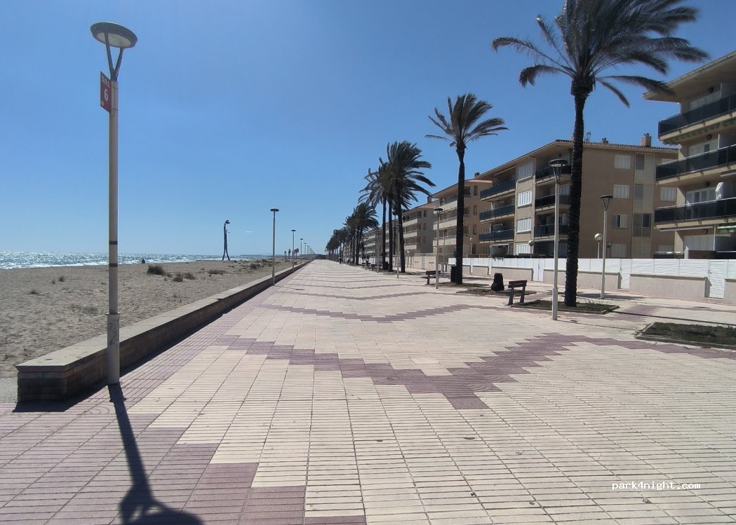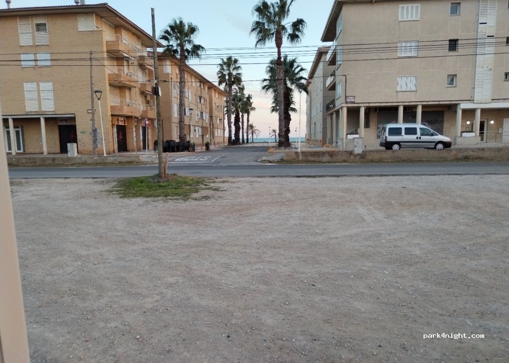 Parking le long de la route. Vue mer si vous vous positionnez entre les immeubles ! Quelques déchets au sol. Aucun service sauf les poubelles de l'autre côté de la route. Plage à 2 minutes à pieds. On entend un peu le train mais c'est raisonnable. La nuit s'est très bien passée.