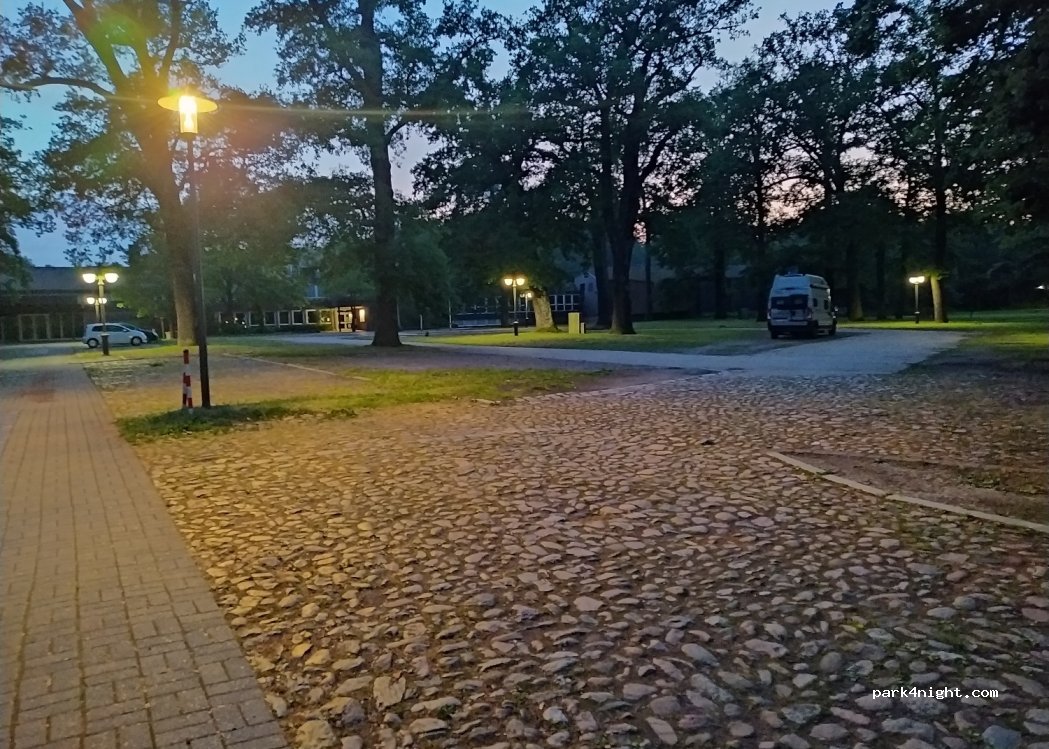 Wir haben hier eine Nacht gestanden, von Samstag auf Sonntag. Es ist absolut ruhig. Hinter der Stadthalle verläuft die Bahnstrecke, von der man aber fast nichts mitbekommt. Der Platz ist sehr einfach aber erfüllt seinen Zweck. Bis in die Innenstadt sind es circa 10-15 Minuten zu Fuß. Außer uns haben hier nur 3 PKW gestanden. Der Platz verfügt über sehr hohe Bäume, die dann viel Schatten spenden.