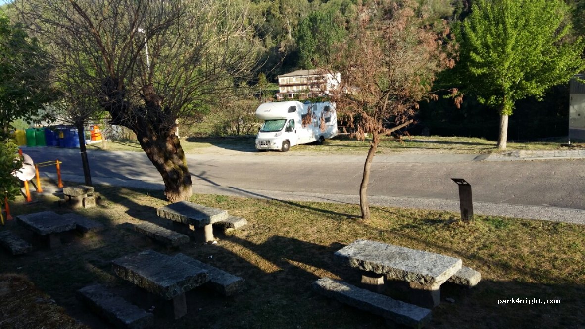 Pequeña zona de aparcamiento a las afueras del pueblo. Bastante nivelado. Muy cerca del castillo, que hacen una pequeña visita guiada. La noche que estuvimos, se pusieron un grupo de jóvenes en los bancos del frente haciendo ruido.