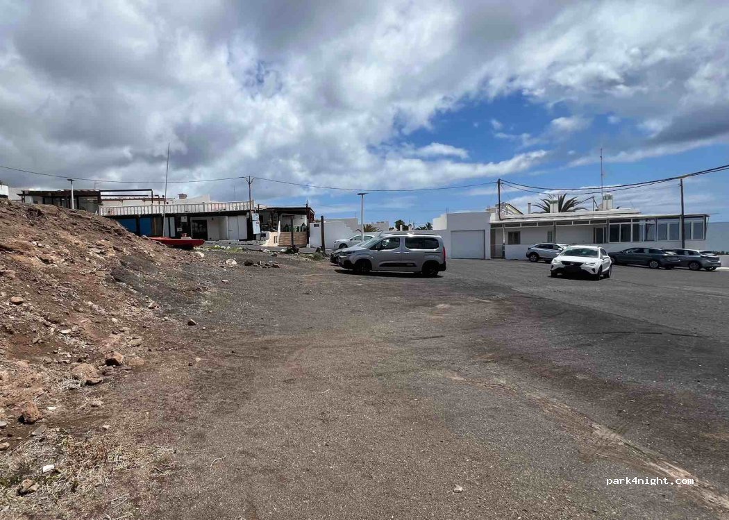 Aparcamiento tranquilo y muy resguardado, estuvimos allí una noche con viento fuerte y no escuchamos nada. En marzo la zona está prácticamente vacía, no lo sé por la temporada alta. ¡ES UNA PEQUEÑA PENDIENTE! Pero también depende de cómo pongas el coche, a mí no me molestó.