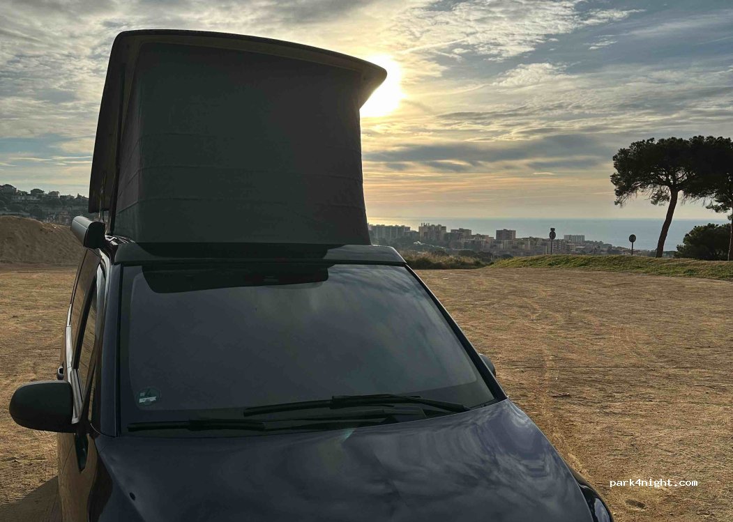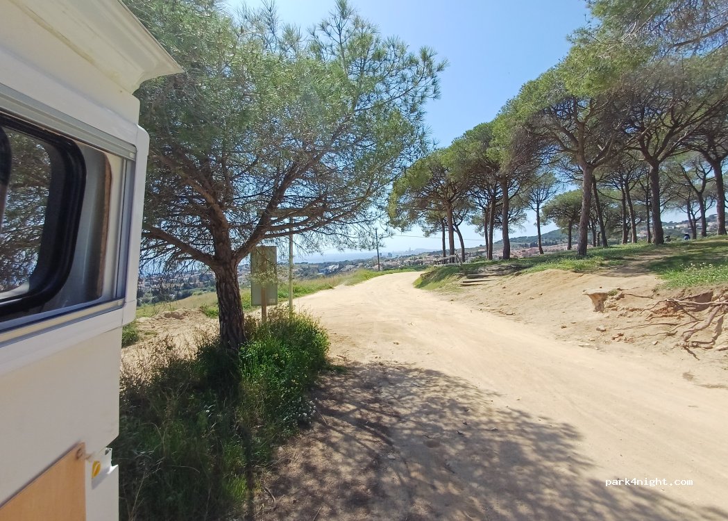 Nuit passée, très calme. En fin de journée et début de soirée, des personnes qui viennent promener mais rien de bien méchant. Vue magnifique ! La plage n’est pas très loin, avec vu au loin sur Barcelone. 30 min environ de Barcelone ! Nous recommandons