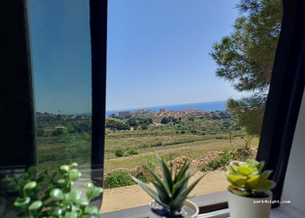 Prima plaats om te overnachten met prachtig uitzicht over het dorpje en de zee. De politie kwam ‘s ochtends even op de parkeerplaats kijken maar zei niks. Wat jongeren in de avond maar niet hinderlijk. De snelweg is wel te horen continu. De parkeerplaats is schoon en licht hellend.