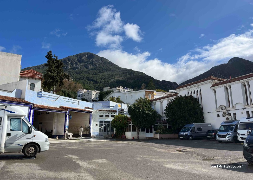 Localización ideal para visitar el centro de Chauen. Llegamos a media tarde y pagamos 40dh hasta el día siguiente al mediodía. Pudimos cargar con agua limpia y vaciar el tanque de agua sucia. Recomendable