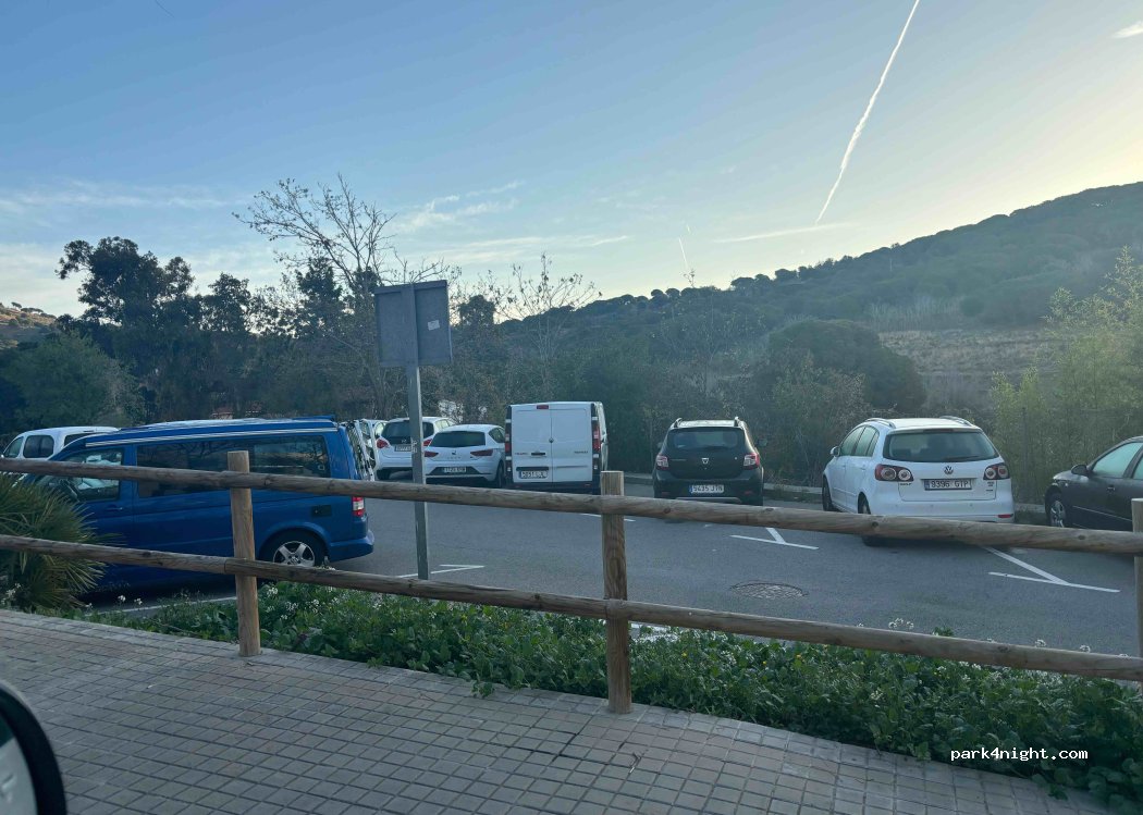 Very safe and free parking place 14 km from Barcelona . Lots of apartment building in front of this place but it’s very quiet . Also ok for 6 meters mobile home and no limit for the height. No water no WC and no electricity. Just ok for sleeping the night in a safe and calm place. Easy to access from the center of Barcelona in 20 min by car if no traffic. There is a bus stop not far away too but it takes hours by public transportation to get to Barcelona.