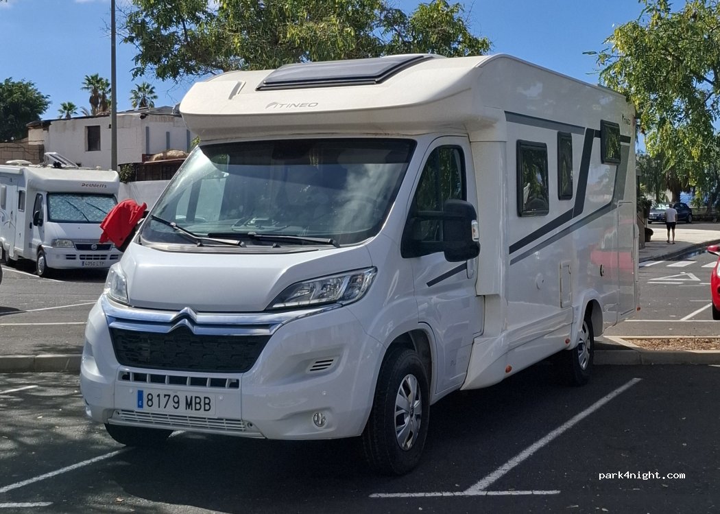 Very large free-parking area with trash bins, no problem to find free spot anytime even for RVs (it seems to me that some of them are parked here permanently). There is great restaurant close by (Pal Choso Guachinche) and laundry room (San Eugenio Laundry room). It is also walking distance to beaches and mall centre (Centro Comercial San Eugenio) whit free toilets.