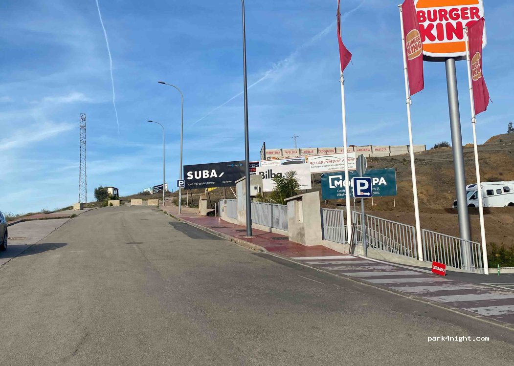 Hace el apaño para una noche si no hay otra opción.Es un descampado detrás del Burger King, hay antenas de telefonía un poco más arriba y una carretera con tráfico incluso durante la noche.