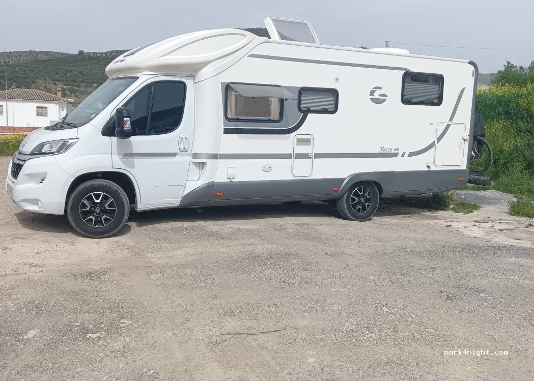 We are in front of the San Isidro cooperative near the San Juan River, we stopped to do the river trail next to the town Castillo de Locubin, a good place to park and rest