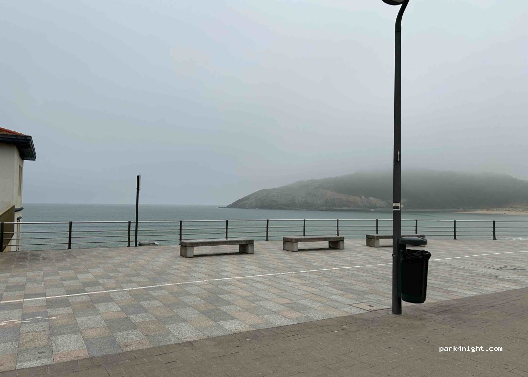 Aparcamiento frente a la playa. Sin restricciones de altura. No vimos ningún letrero que dijera que no podemos estacionar aquí ni ningún letrero que dijera que teníamos que pagar. Estacionamos aquí por unas horas.