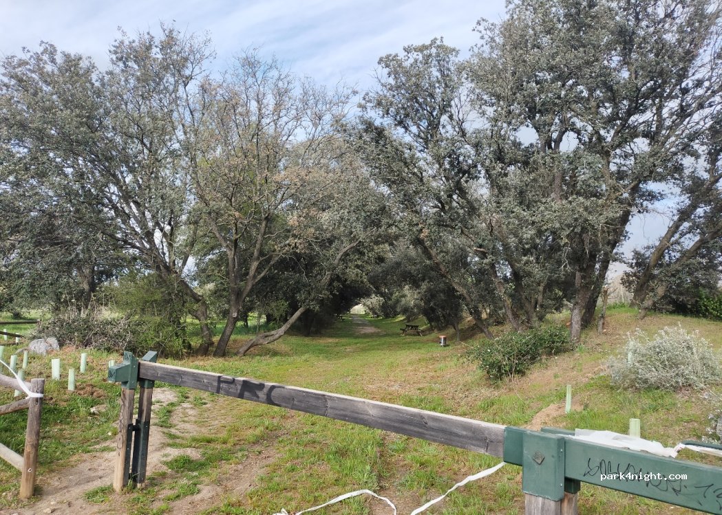 Öffentlicher Parkplatz, ausreichend für jede Klimaanlage, Wohnmobil usw., in einem Erholungsgebiet mit schattigen Tischen und Mülleimern, am Anfang der Villamantilla-Straße gelegen, neben dem Fluss und der Autobahn, sehr gut